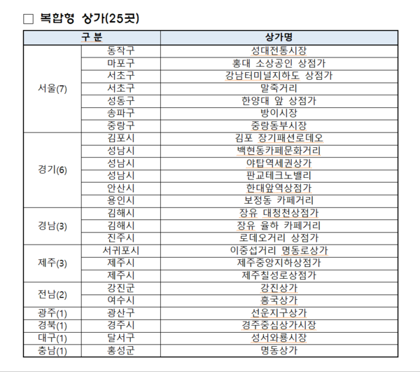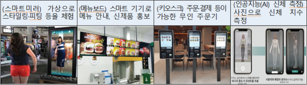 복합형 상가로 선정된 25곳에는 가상현실(VR)과 증강현실(AR)을 활용한 스마트미러, 스마트 메뉴보드, 키오스크, 서빙‧조리 로봇 등 소상공인의 경영‧서비스 혁신을 지원하는 스마트기술과 비대면 예약‧주문‧결제 등이 가능한 스마트오더 시스템 도입을 지원하고, 일반형 상가로 선정된 10곳에는 스마트오더 시스템 도입을 지원할 계획이다.