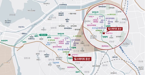 한편 둔산지구에 공급되는 힐스테이트 둔산 견본주택은 대전지하철 1호선 유성온천역 인근에 들어설 예정이다.