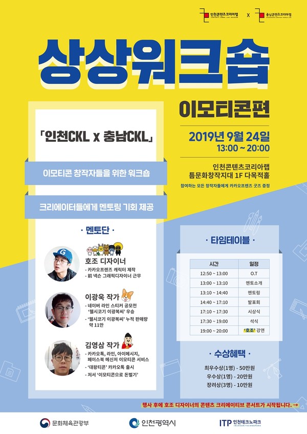 [더블유스타트업] 인천테크노파크 인천콘텐츠코리아랩과 충남콘텐츠코리아랩은 오는 20일까지 ‘상상워크숍’에 참여할 문화콘텐츠 창작자 및 예비창업자를 모집한다.