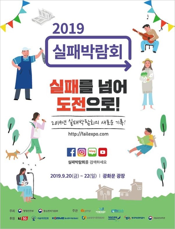 중소벤처기업부(장관 박영선)와 행정안전부(장관 진영)가 주최하는 실패를 두려워하지 않는 대국민 재도전 권장 캠페인 ‘2019 실패박람회’가 9월 20일부터 22일까지 광화문 광장에서 개최된다.