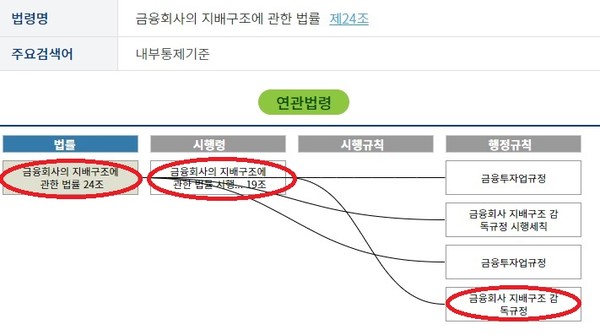 그렇지만 2심 재판부는 내부통제기준 마련의무를 규정한 금융회사지배구조법(제24조)을 시행령(제19조)과 행정규칙인 금융회사 지배구조 감독규정(별표2)과 연결지어 판단했다. 내부통제기준 마련의무 규정은 시행령의 '내부통제가 실효성있게 이뤄질 수 있도록 해야한다'로 이어지고, '내부통제기준의 실효성' 유무 판단은 감독규정을 통해야 한다는 것이다. 2심 재판부는 "내부통제기준 마련의무 이행 여부를 판단할 때 금융회사 지배구조 감독규정 별표2를 당연히 고려해야 한다"고 밝혔다.