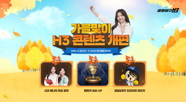 엔씨소프트는 모바일 야구 매니지먼트 게임 '프로야구 H3'가 가을 시즌을 맞이해 콘텐프 개편 및 이벤트를 실시한다고 24일 밝혔다.