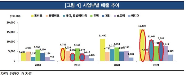 비금융 부문의 카카오모빌리티와 카카오페이 등은 2018~2019년 수익성이 다소 저하됐지만, 2020년부터 두 자릿수 이상의 영업이익률을 기록하고 있다.