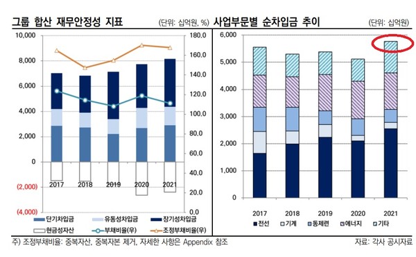 한국기업평가도 올해와 내년 LS그룹의 투자규모가 최근 3개년 평균 규모(0.6조원)을 웃돌 것으로 예상돼 차입금 규모가 늘어날 것으로 봤다. 그러면서 "향후 주력 계열사를 중심으로 한 영업현금흐름, 투자정책과 자금조달 전략 모니터링이 필요하다"고 평가했다.