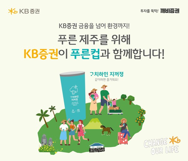 KB증권(사장 박정림, 김성현)은 7일 ‘푸른 하늘의 날’을 맞이해 제주지역에서 다회용컵 대여 서비스를 하는 예비사회적기업 푸른컵과 협약을 맺고 다회용컵 제작 지원 및 일회용컵 줄이기 운동을 함께하기로 했다고 밝혔다.