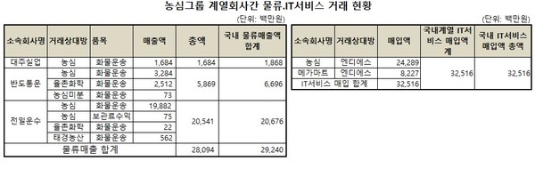 그런데 농심그룹은 IT서비스 외에 물류서비스도 특정 계열사로 일감이 집중돼 있다.