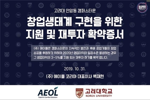 에이올코리아의 ‘확약증서’는 10월 31일(목) 13시 중앙대 백주년기념관에서 열리는 ‘서울 캠퍼스타운 페스티벌 2019’ 개회식에서 전달할 예정이다.