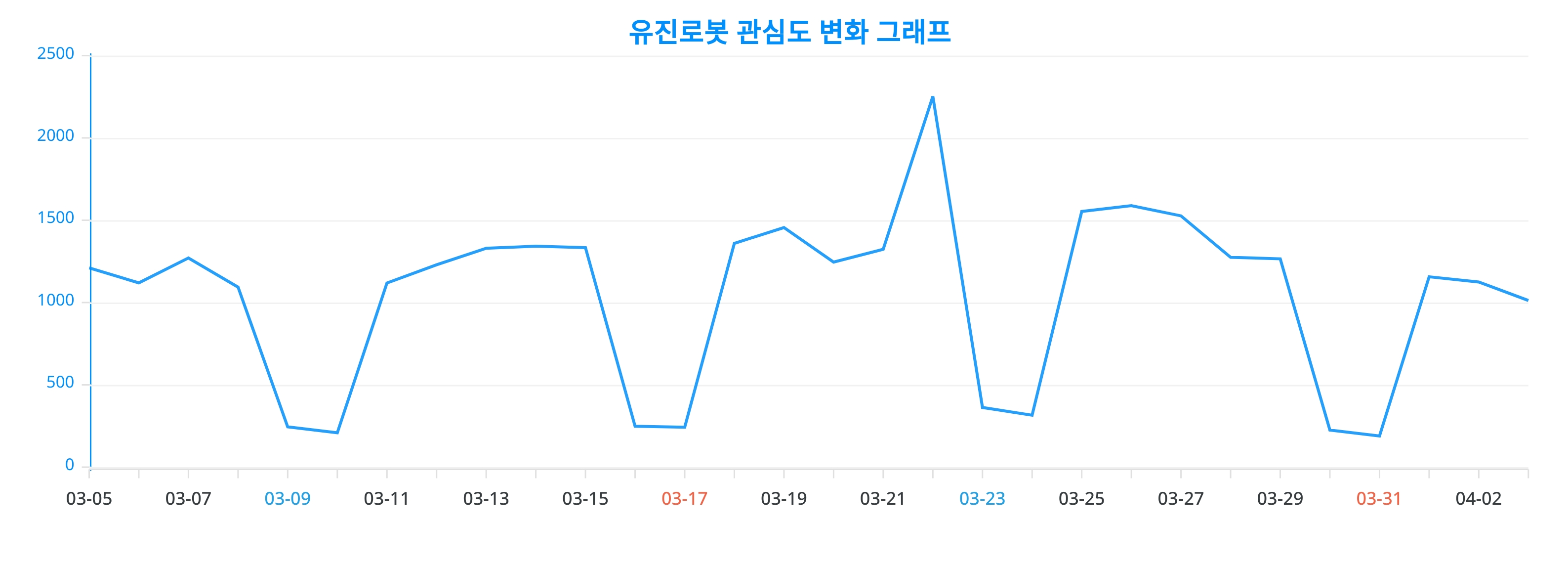 더불어, 랭키파이 연령별 관심도 조사에서는 유진로봇 주가, 유진로봇청소기, (주)유진로봇 등의 관련 검색어가 높은 주목을 받고 있음을 보여줌으로써, 관심 키워드 유진로봇 관련 트렌드가 어떤 방향으로 발전하고 있는지에 대한 흥미로운 인사이트를 제공한다.