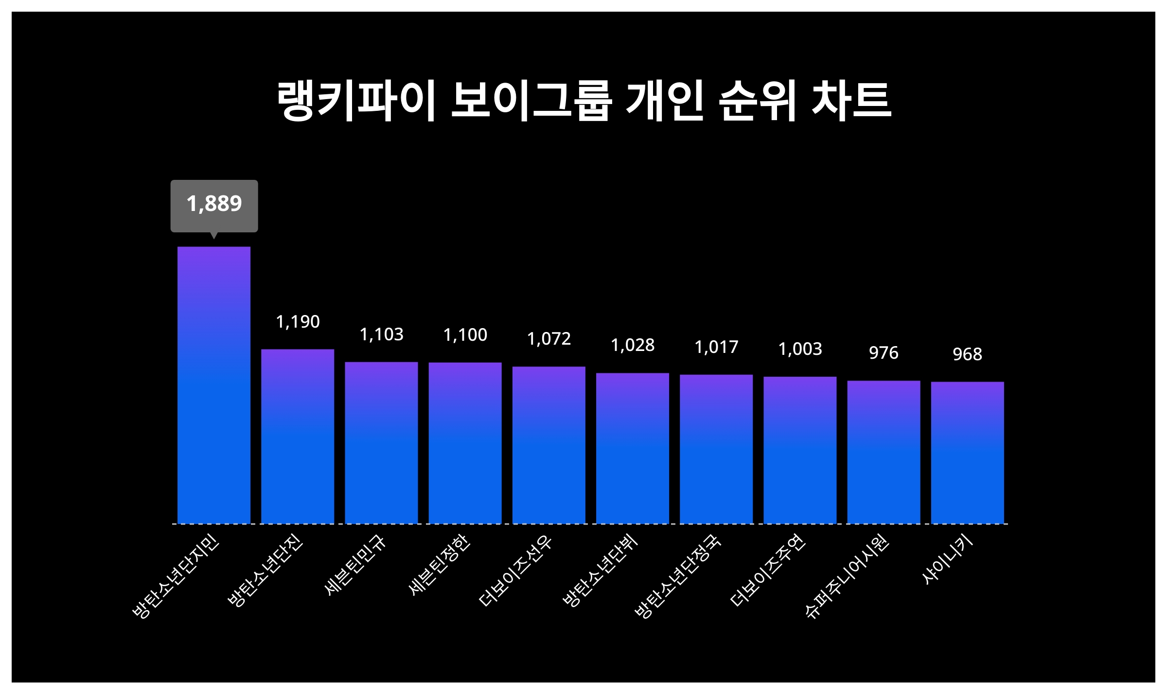 | 1 | 방탄소년단지민 | 1,889 | 1,982 | -93 | -4.7% |