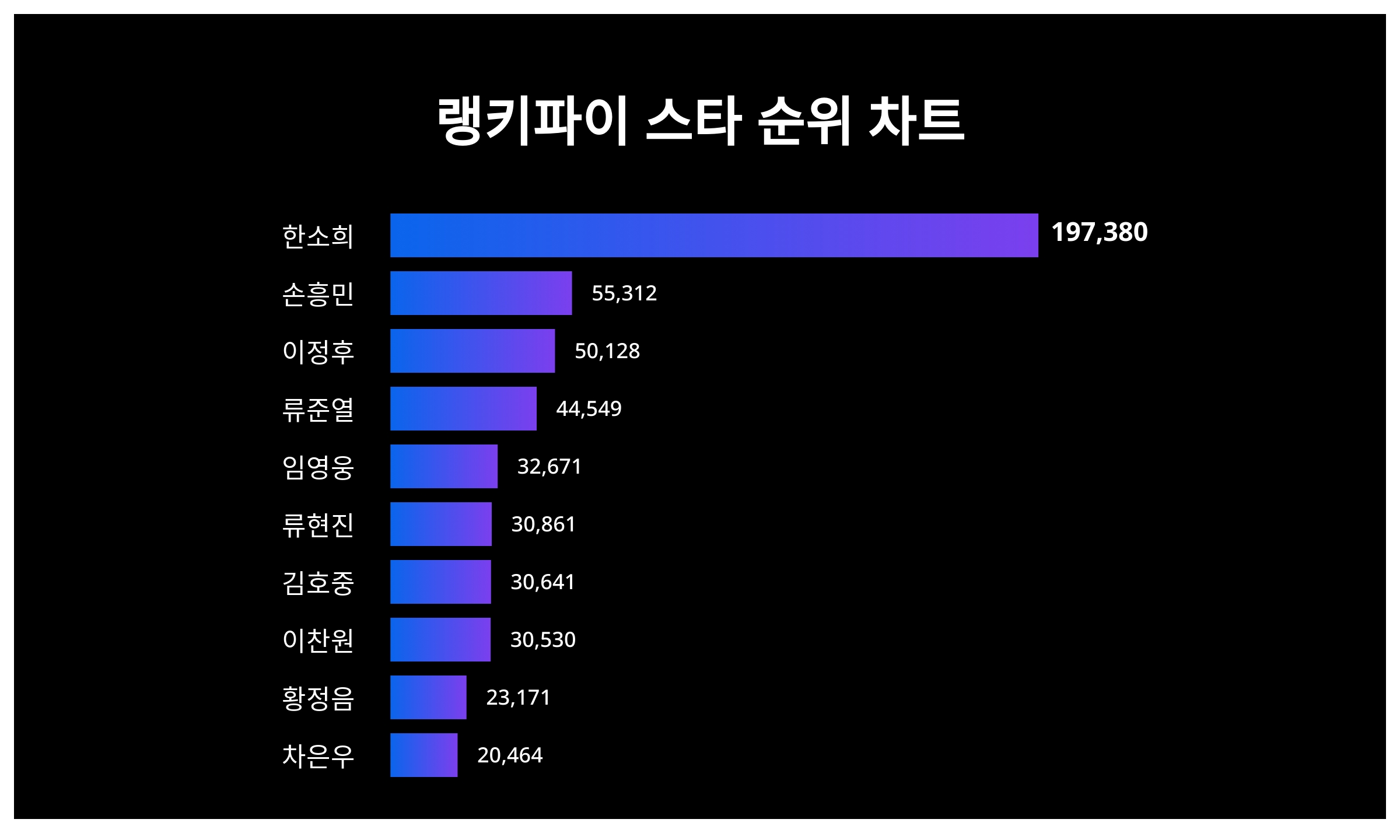 | 1 | 한소희 | 197,380 | 135,554 | 61,826 | 45.6% |