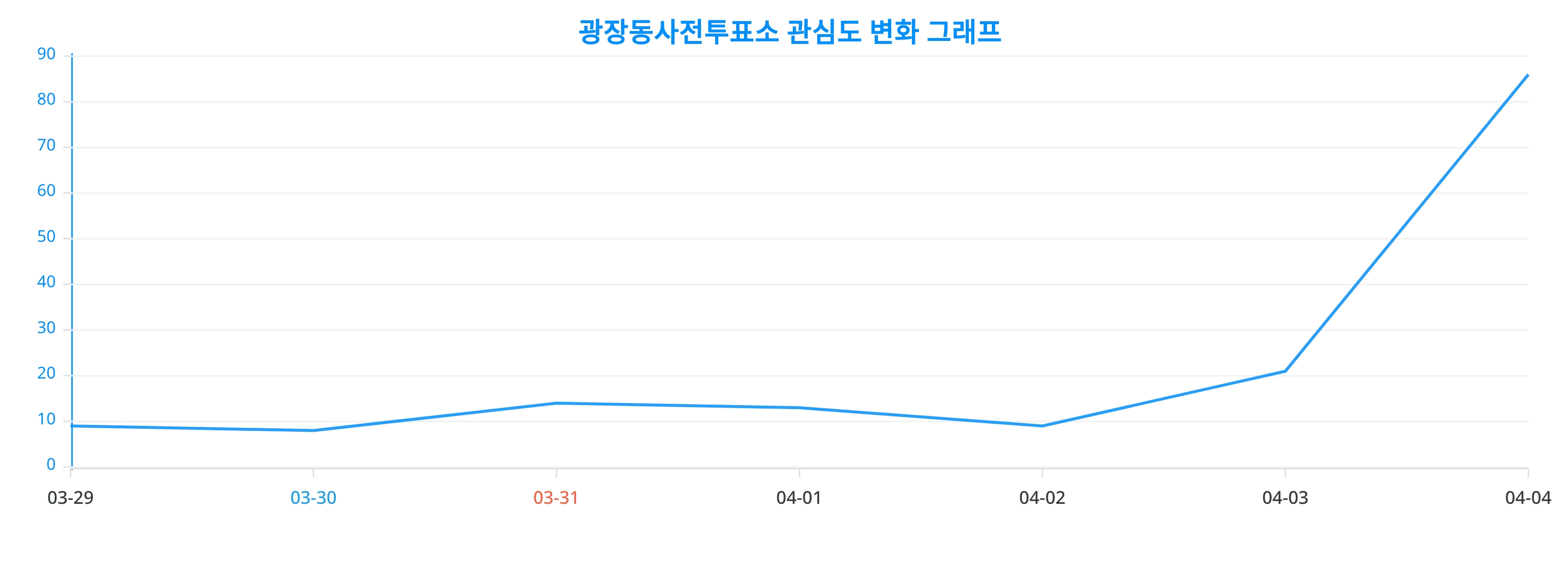 또한, 광장동사전투표소에 대한 일간 변화 추이를 보여주는 차트는 광장동사전투표소에 대한 관심이 어떻게 변화하고 있는지를 상세하게 보여준다.