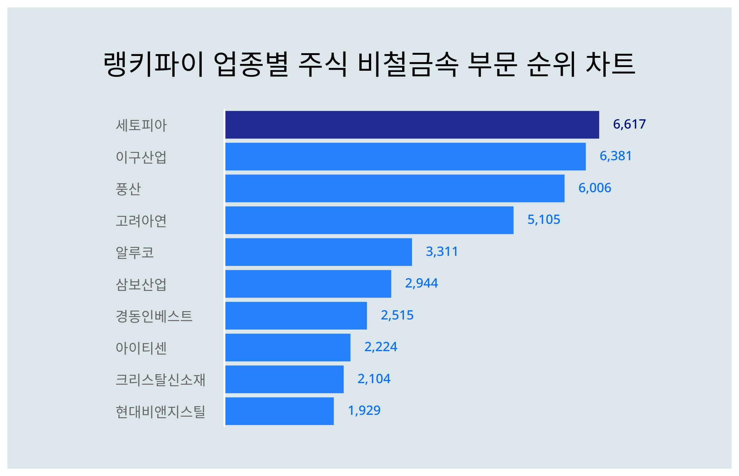 | 10 | 현대비앤지스틸 | 1,929 | 2,291 | -362 | -15.8% |