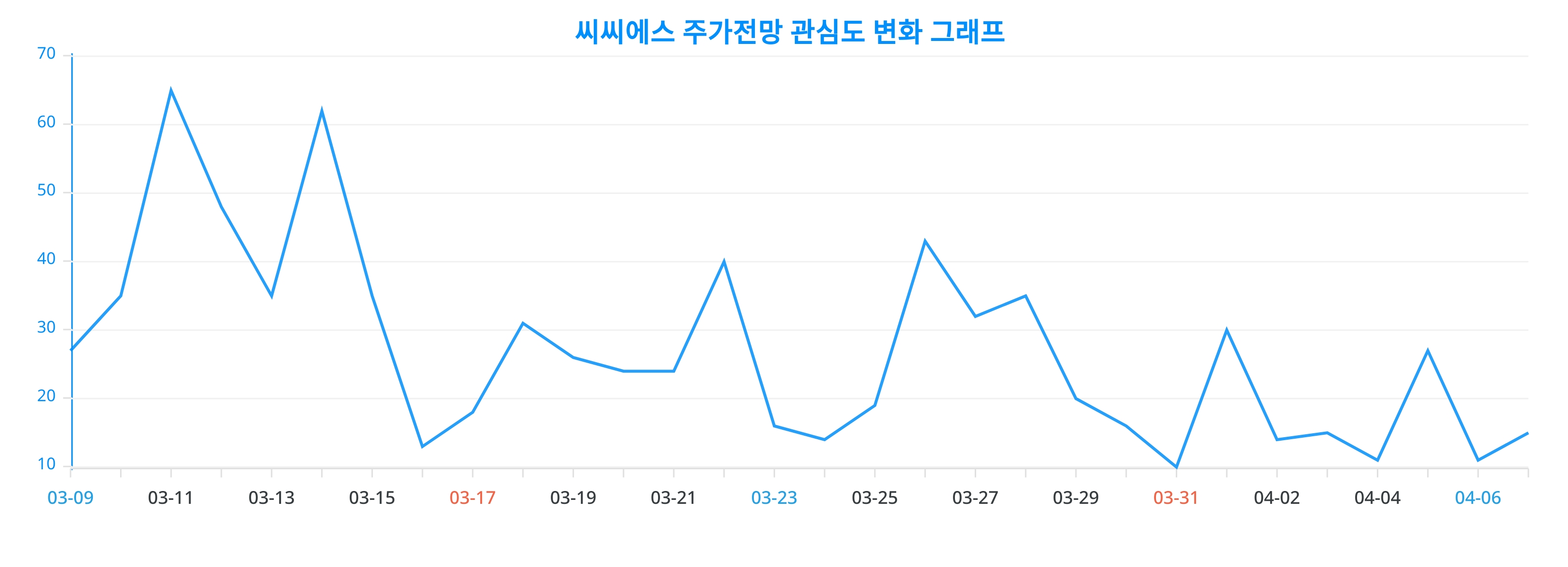 이번 분석을 통해 얻어진 씨씨에스 주가전망에 대한 일간 변화 추이 차트는, 씨씨에스 주가전망에 대한 관심이 어떻게 변화했는지를 생생하게 드러낸다.