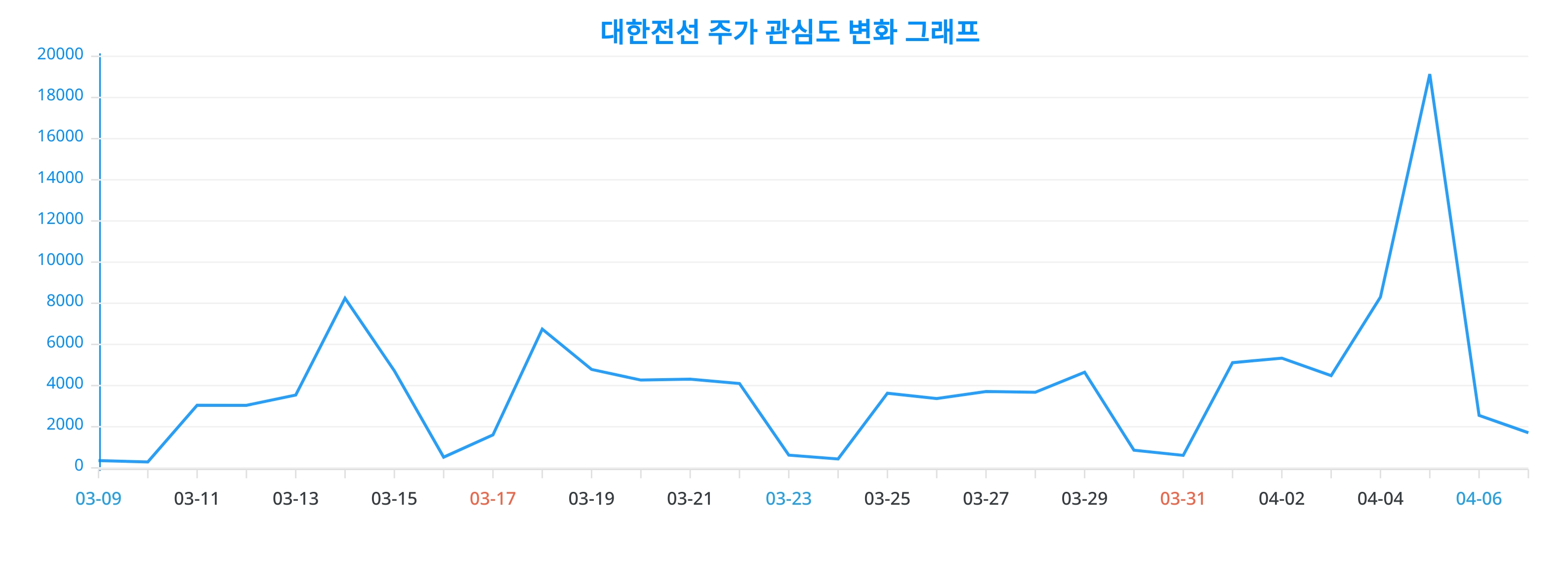 또한, 대한전선 주가에 대한 일간 변화 추이를 보여주는 차트는 대한전선 주가에 대한 관심이 어떻게 변화하고 있는지를 상세하게 보여준다.
