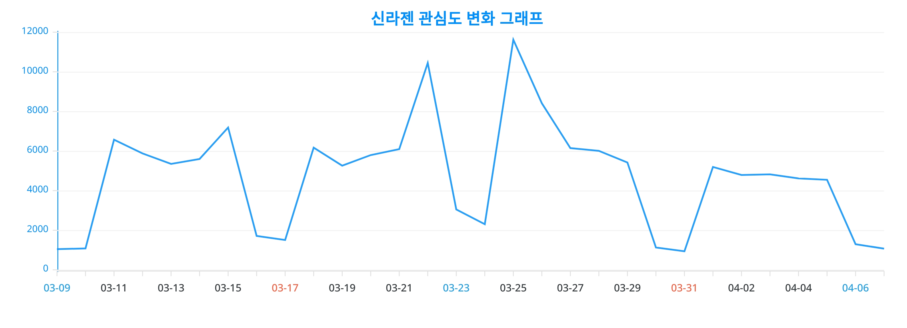 특히, 신라젠에 대한 성별 관심도 조사 결과, 남자가 76%의 비율로 더 높은 관심을 보이는 것으로 나타나, 이 인기 키워드에 대한 성별 편차를 드러냈다.
