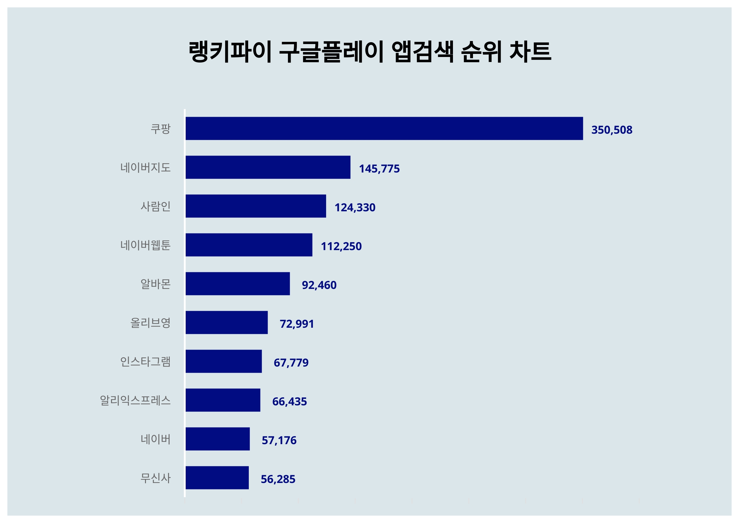 [이슈앤비즈 박민주 기자] 쿠팡이 구글플레이 앱검색 트렌드 지수 1위를 차지했다.