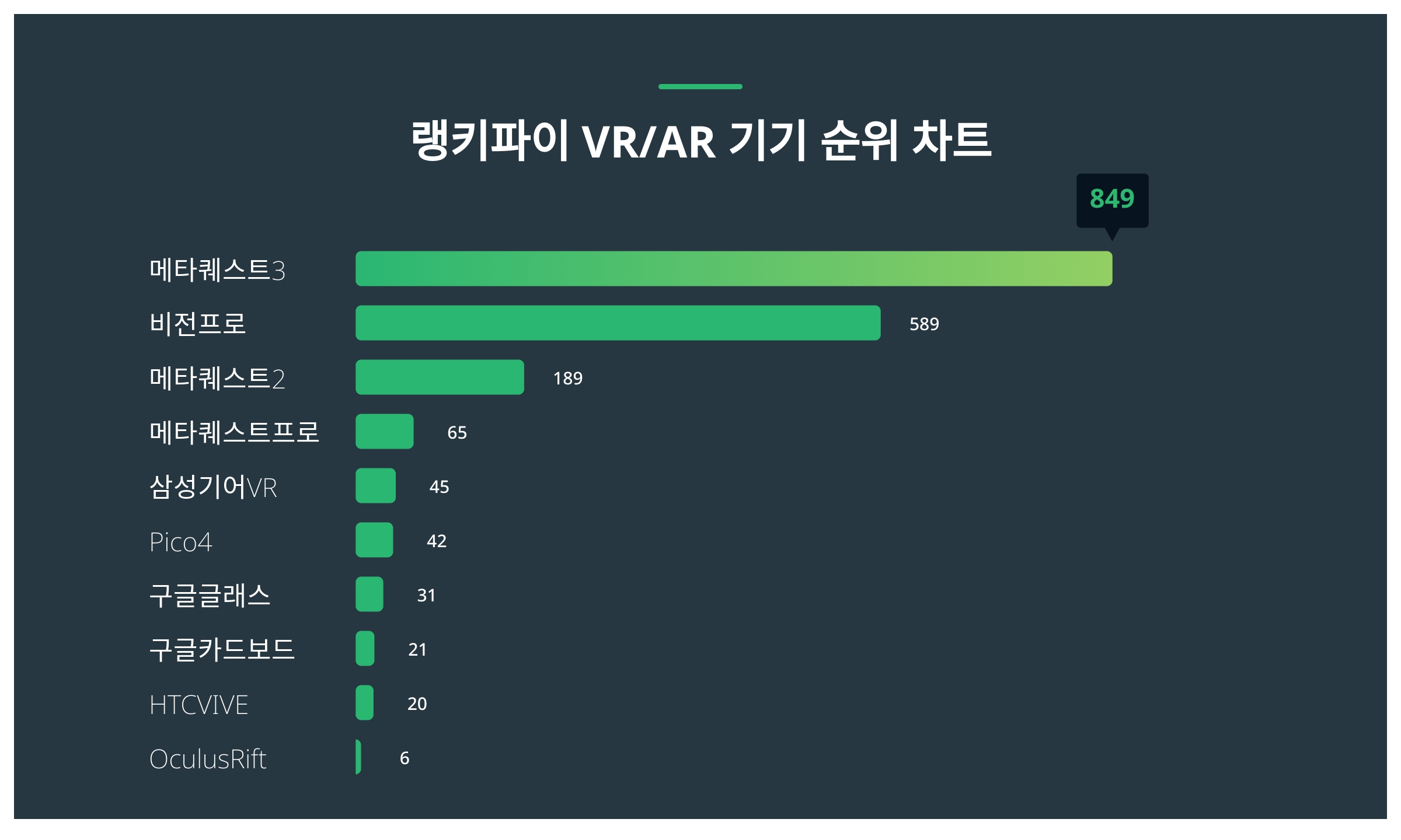 | 1 | 메타퀘스트3 | 849 | 85% | 15% |