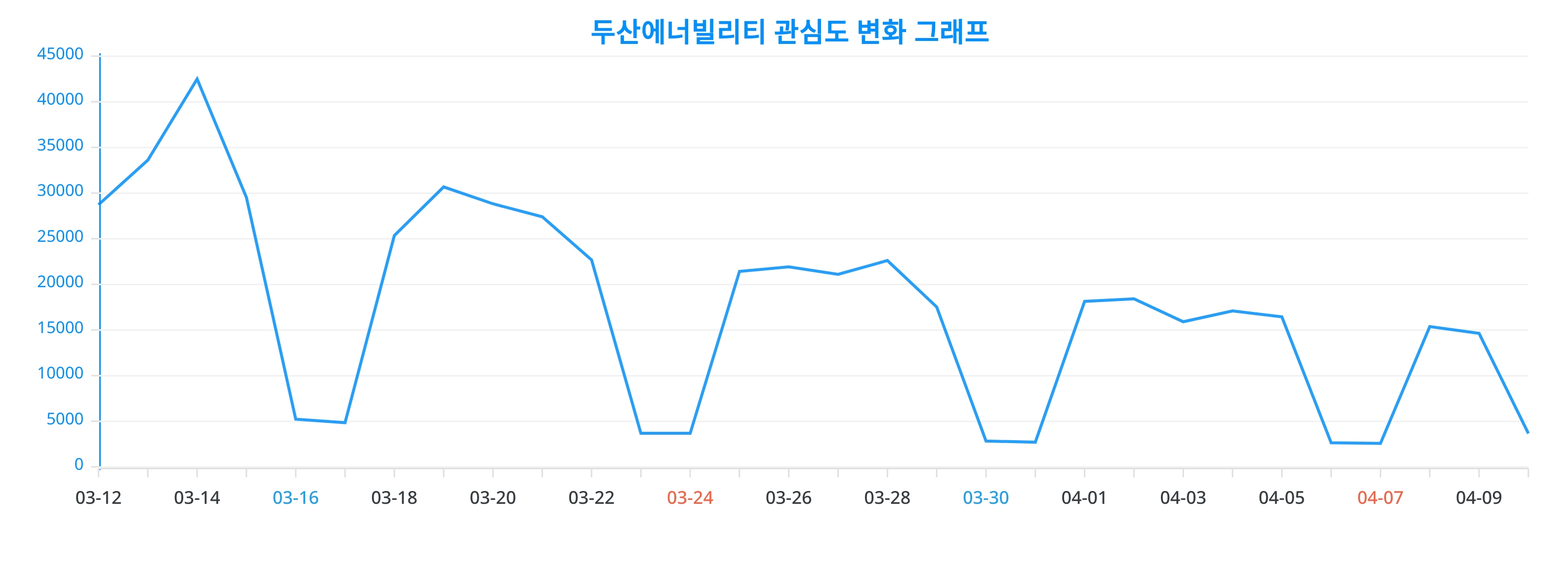 이 차트는 두산에너빌리티의 시간에 따른 인기 변동성을 직관적으로 이해할 수 있는 지표이다.