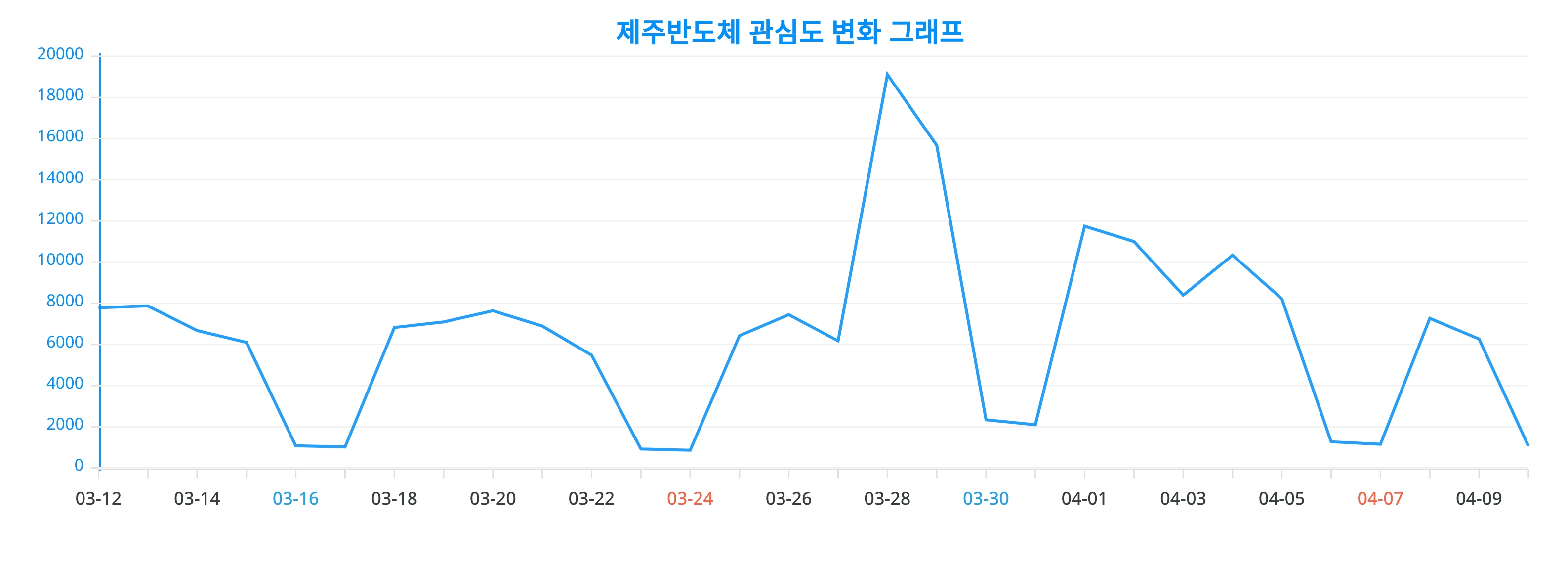이번 분석을 통해 얻어진 제주반도체에 대한 일간 변화 추이 차트는, 제주반도체에 대한 관심이 어떻게 변화했는지를 생생하게 드러낸다.