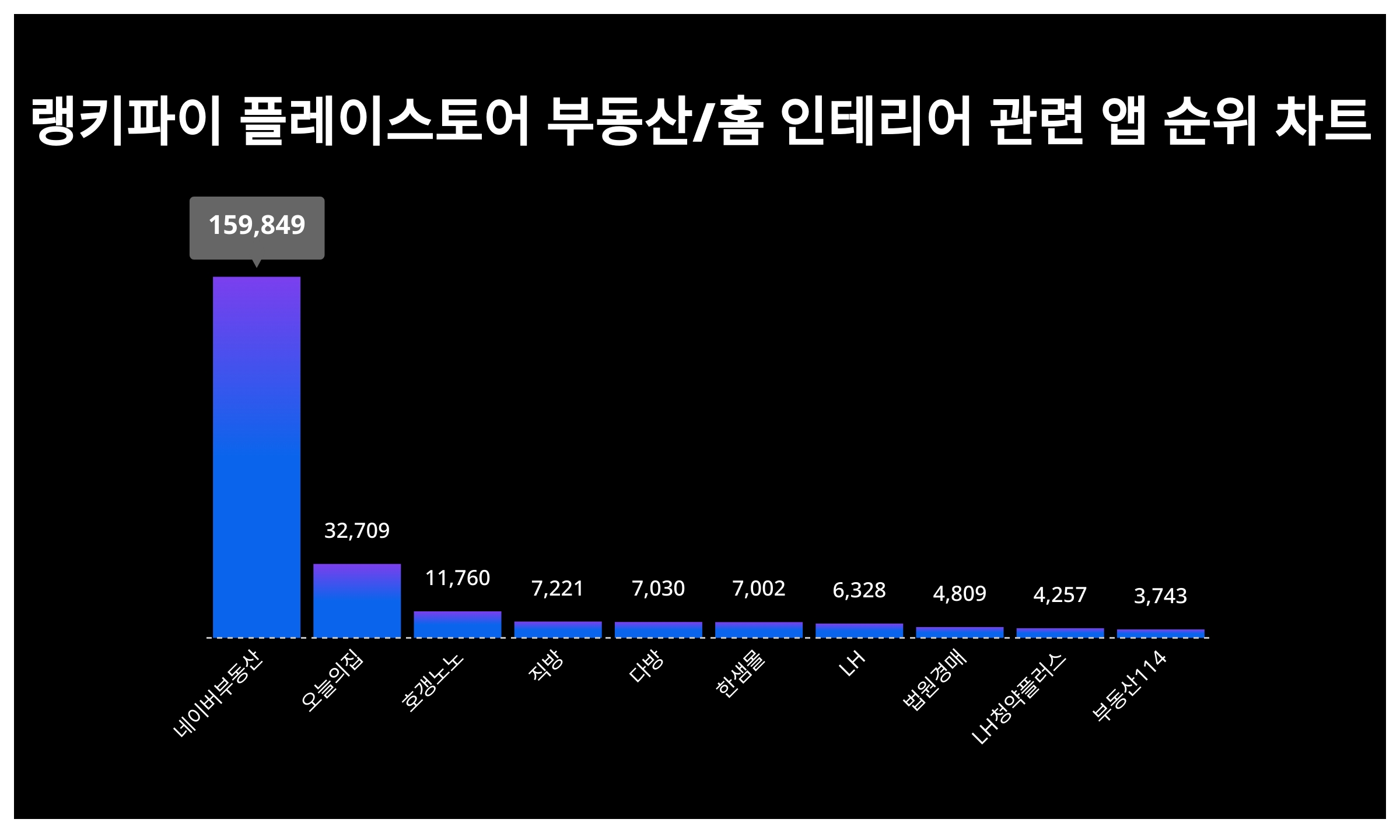 | 1 | 네이버부동산 | 159,849 | 157,036 | 2,813 | 1.8% |