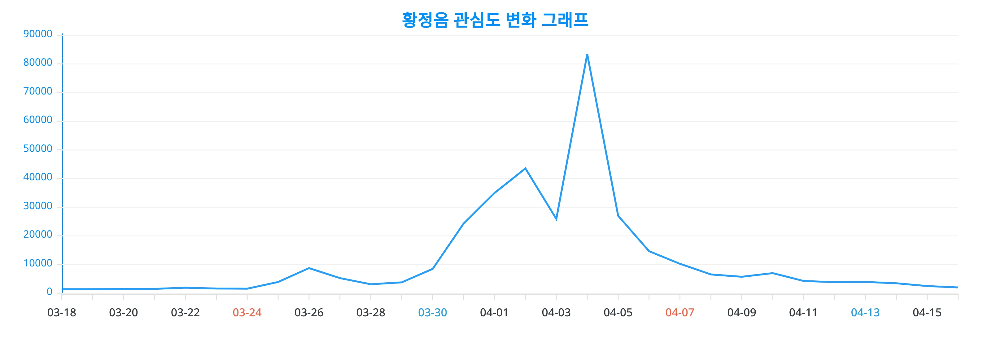 이번 분석을 통해 얻어진 황정음에 대한 일간 변화 추이를 보여주는 차트는, 각 성별과 연령대별로 얼마나 황정음에 대한 관심이 변화했는지를 생생하게 드러낸다.