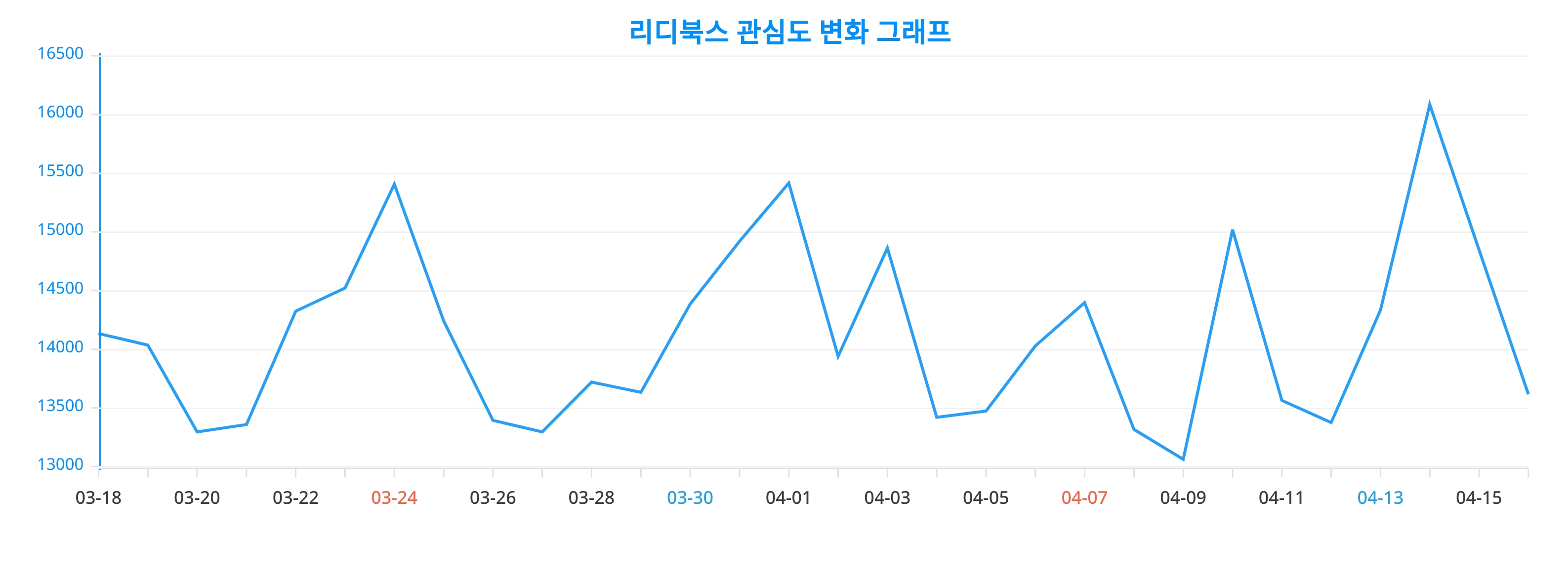 이번 분석을 통해 얻어진 리디북스에 대한 일간 변화 추이 차트는, 리디북스에 대한 관심이 어떻게 변화했는지를 생생하게 드러낸다.