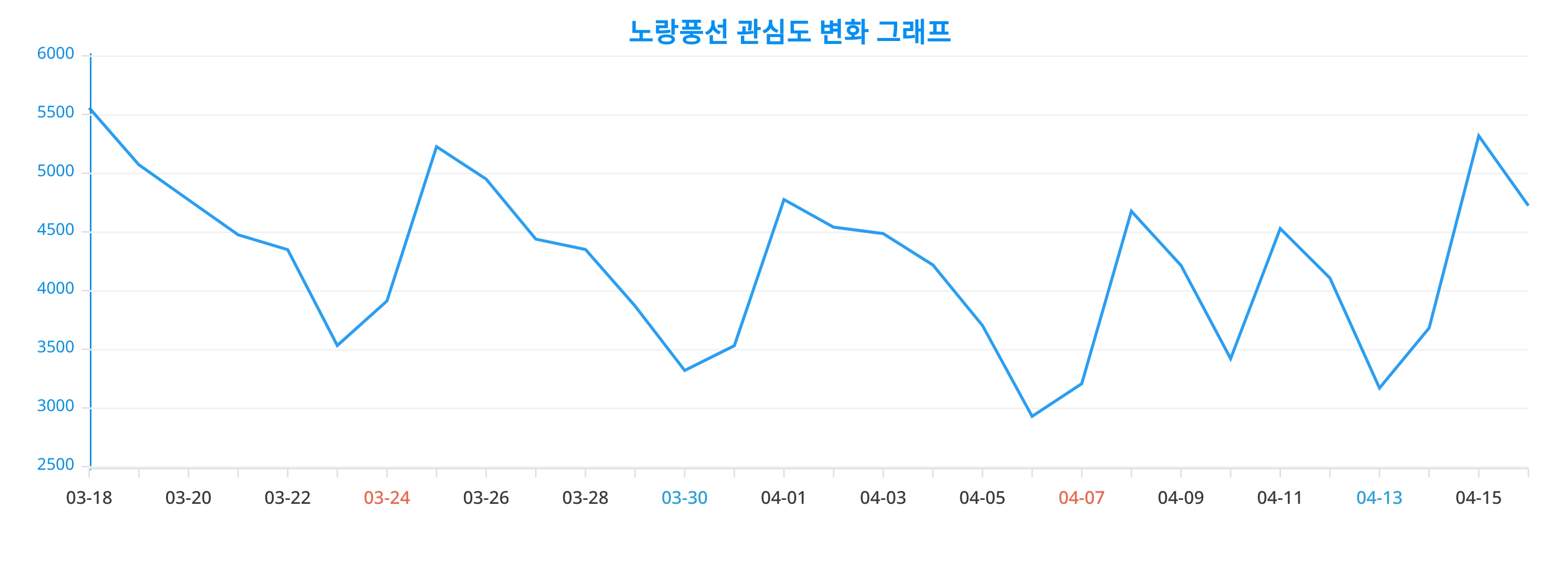 더불어, 랭키파이 연령별 관심도 조사에서는 노랑풍선여행사, 노랑풍선 패키지, 노랑풍선 시티버스, 노랑풍선 항공권, 노랑풍선 고객센터 등의 관련 검색어가 높은 주목을 받고 있음을 보여줌으로써, 관심 키워드 노랑풍선 관련 트렌드가 어떤 방향으로 발전하고 있는지에 대한 흥미로운 인사이트를 제공한다.