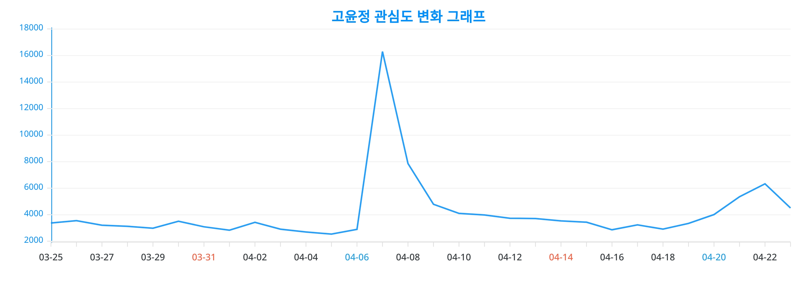 이번 분석을 통해 얻어진 고윤정에 대한 일간 변화 추이를 보여주는 차트는, 각 성별과 연령대별로 얼마나 고윤정에 대한 관심이 변화했는지를 생생하게 드러낸다.