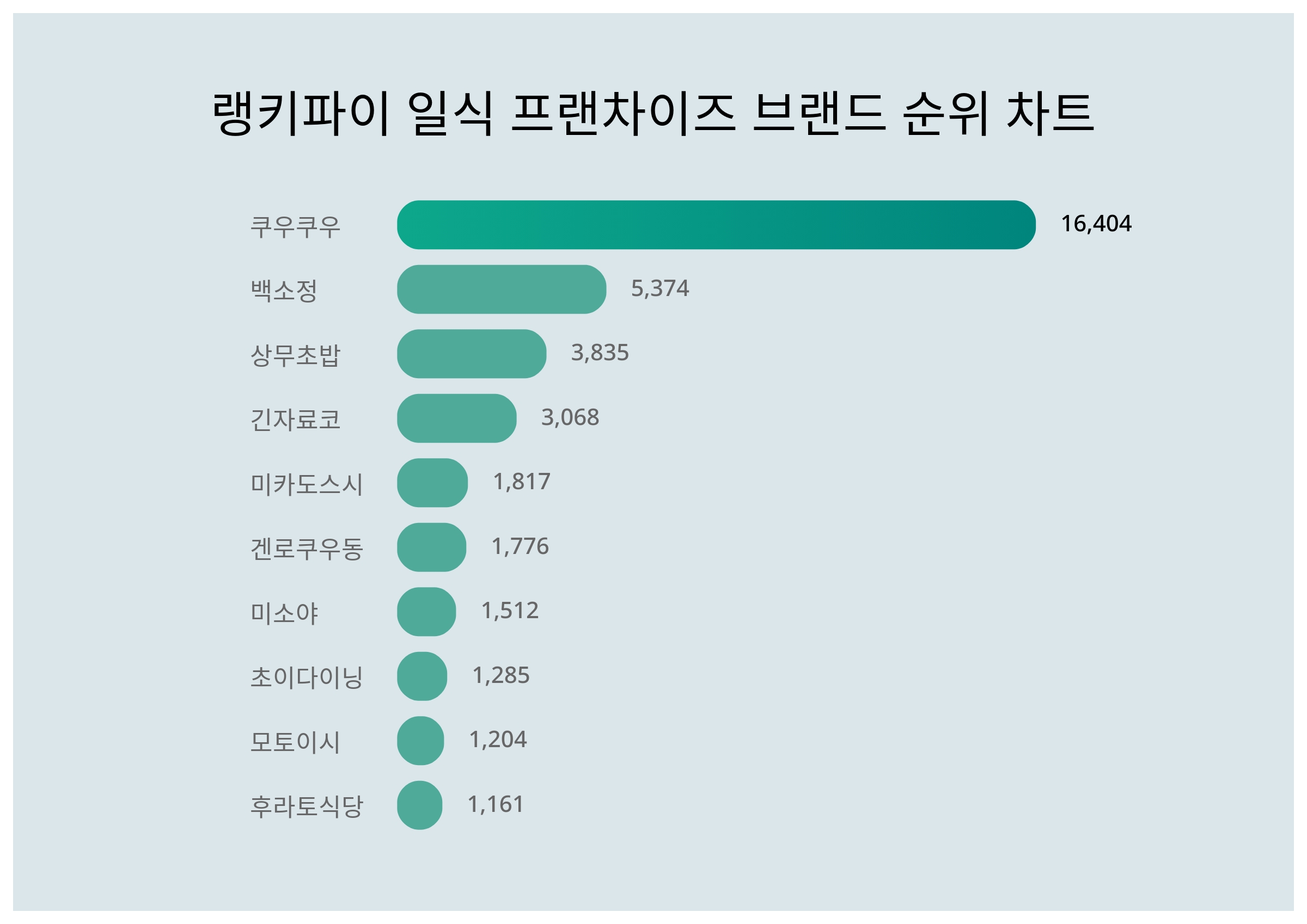 ▲일식 프랜차이즈 브랜드 트렌드 지수 분석 결과 ⓒ랭키파이
