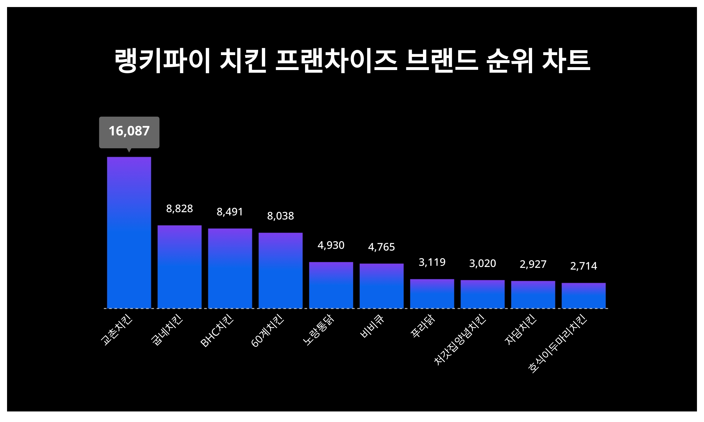 | 1 | 교촌치킨 | 16,087 | 44% | 56% |