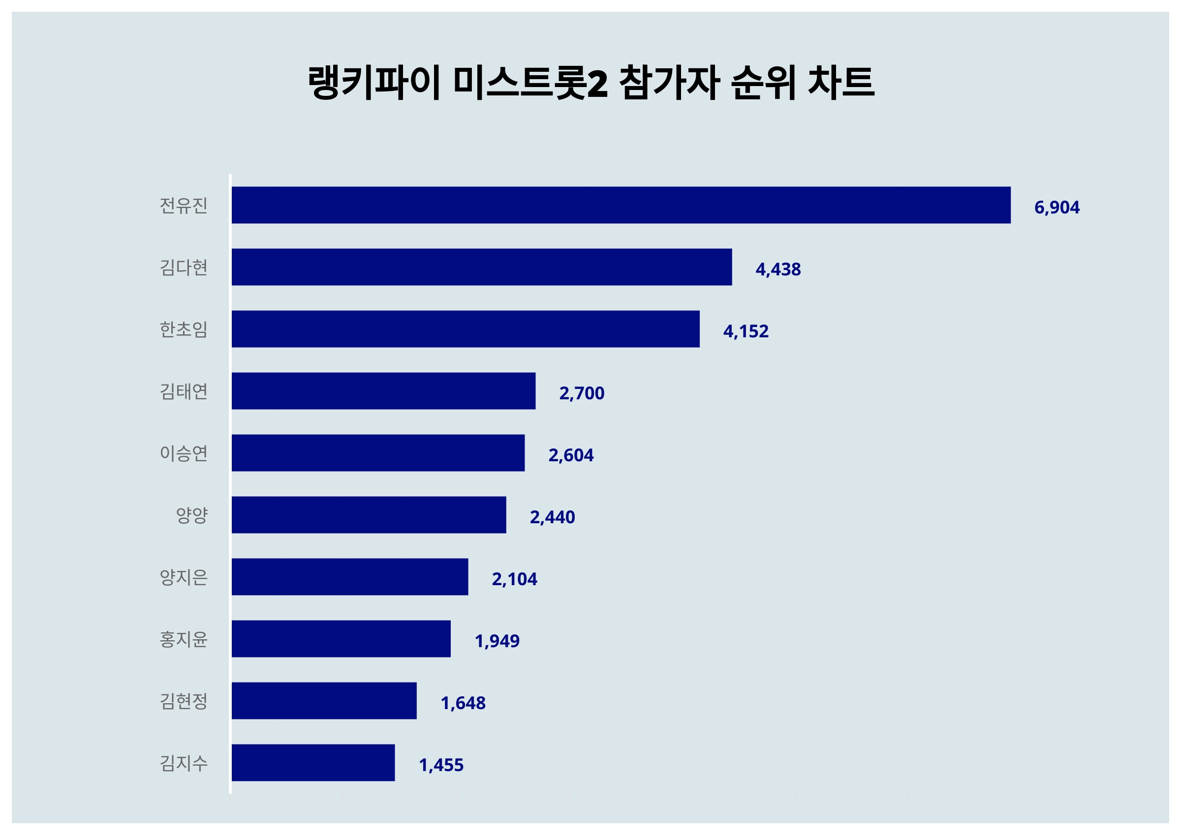 ▲미스트롯2 참가자 트렌드 지수 분석 결과 ⓒ랭키파이