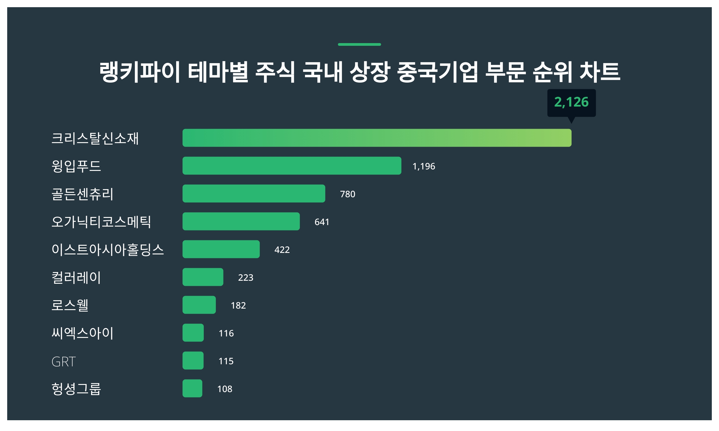 [출처: 랭키파이 테마별 주식 국내 상장 중국기업 부문 트렌드 테이블]