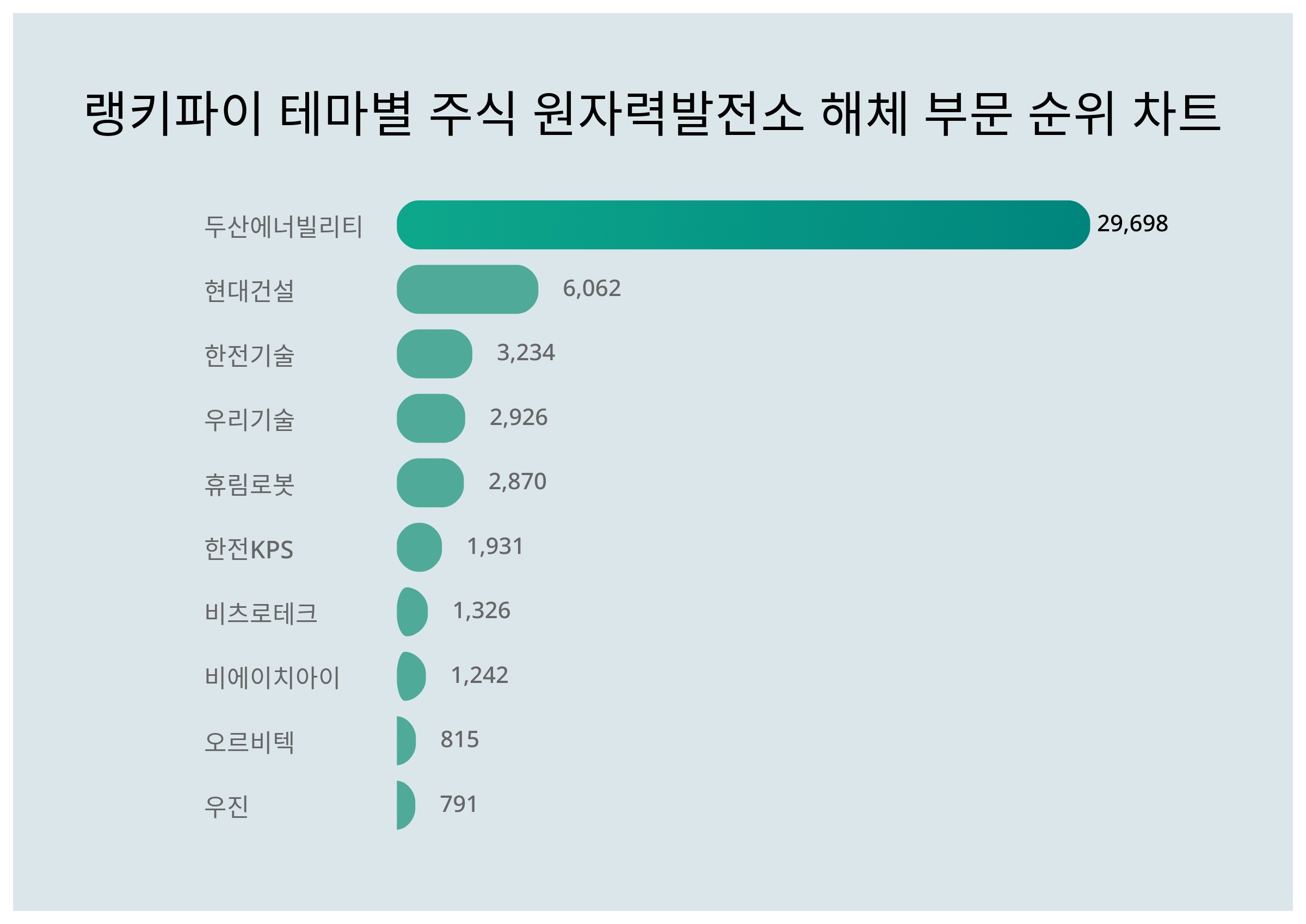 [출처: 랭키파이 테마별 주식 원자력발전소 해체 부문 트렌드 테이블]