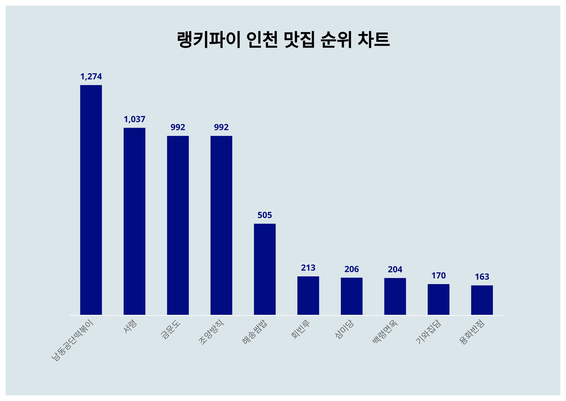▲인천 맛집 트렌드 지수 분석 결과 ⓒ랭키파이
