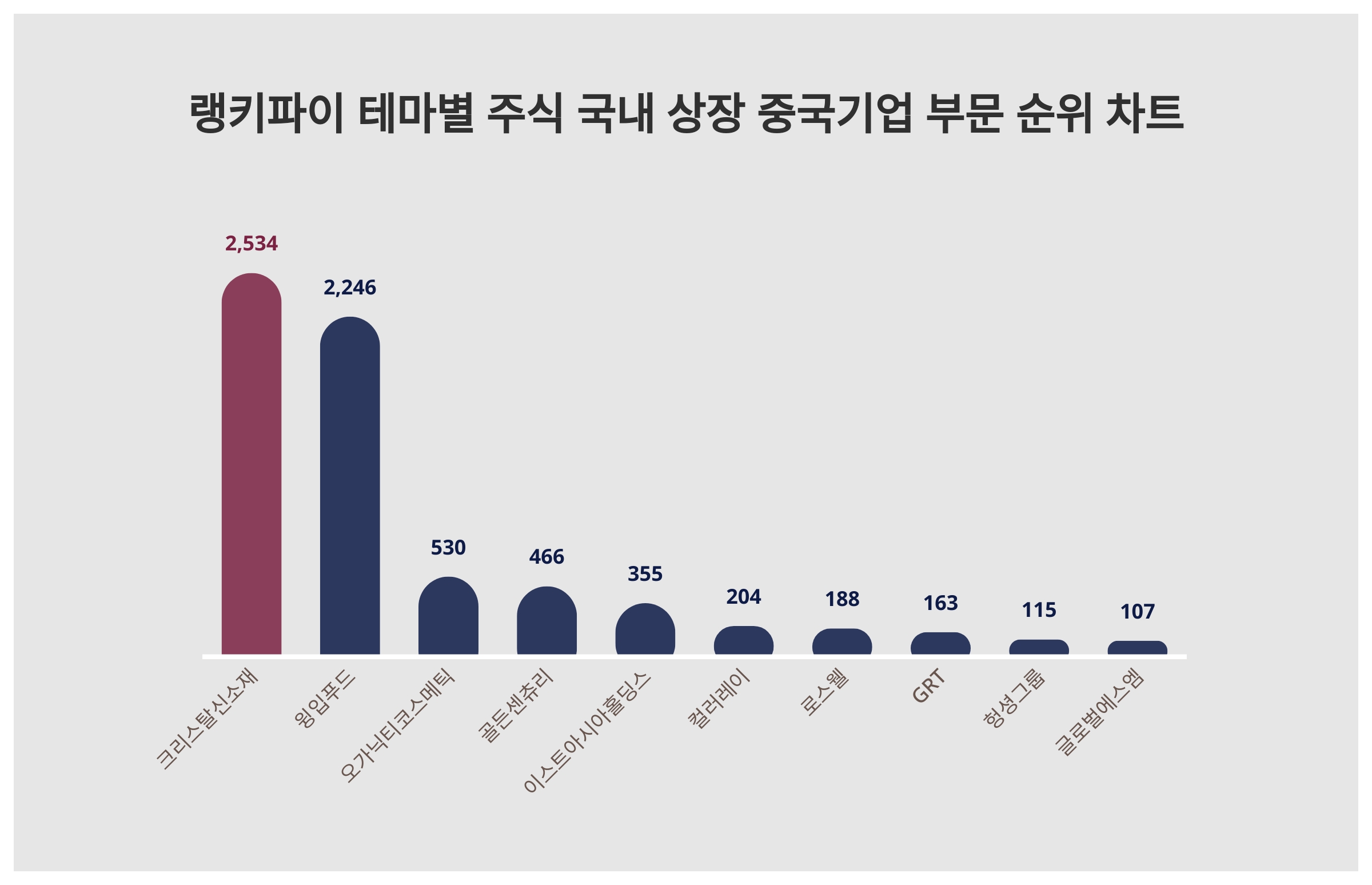 [출처: 랭키파이 테마별 주식 국내 상장 중국기업 부문 트렌드 테이블]