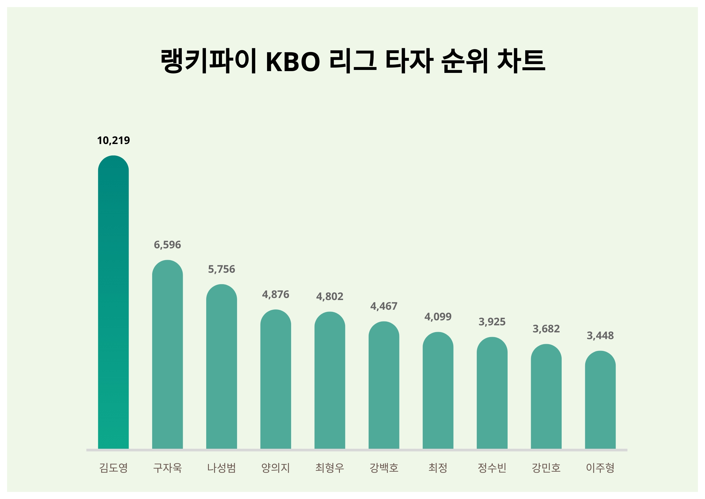 | 3 | 나성범 | 5,756 | 72% | 28% |