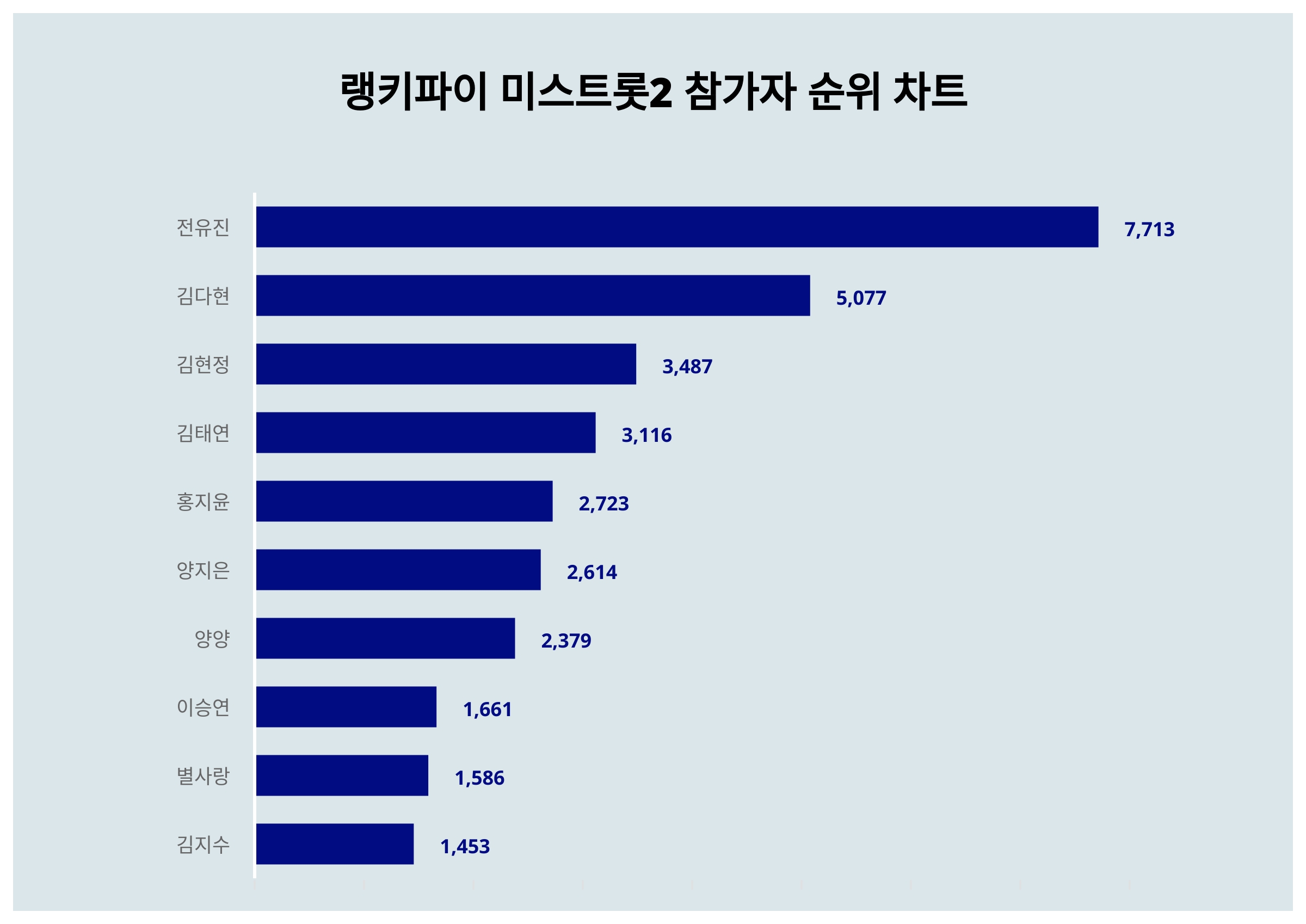 ▲미스트롯2 참가자 트렌드 지수 분석 결과 ⓒ랭키파이