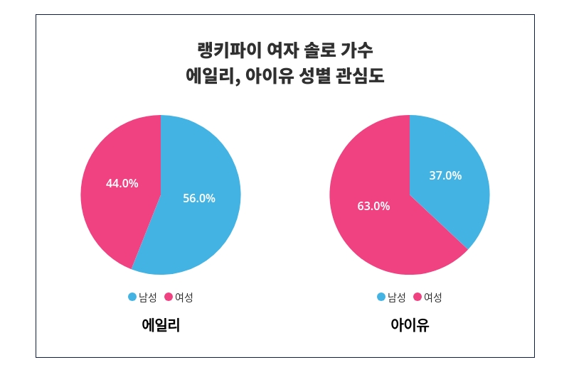 추가적으로 아이유는 남성보다 '여성'에서 높은 관심을 받았다.