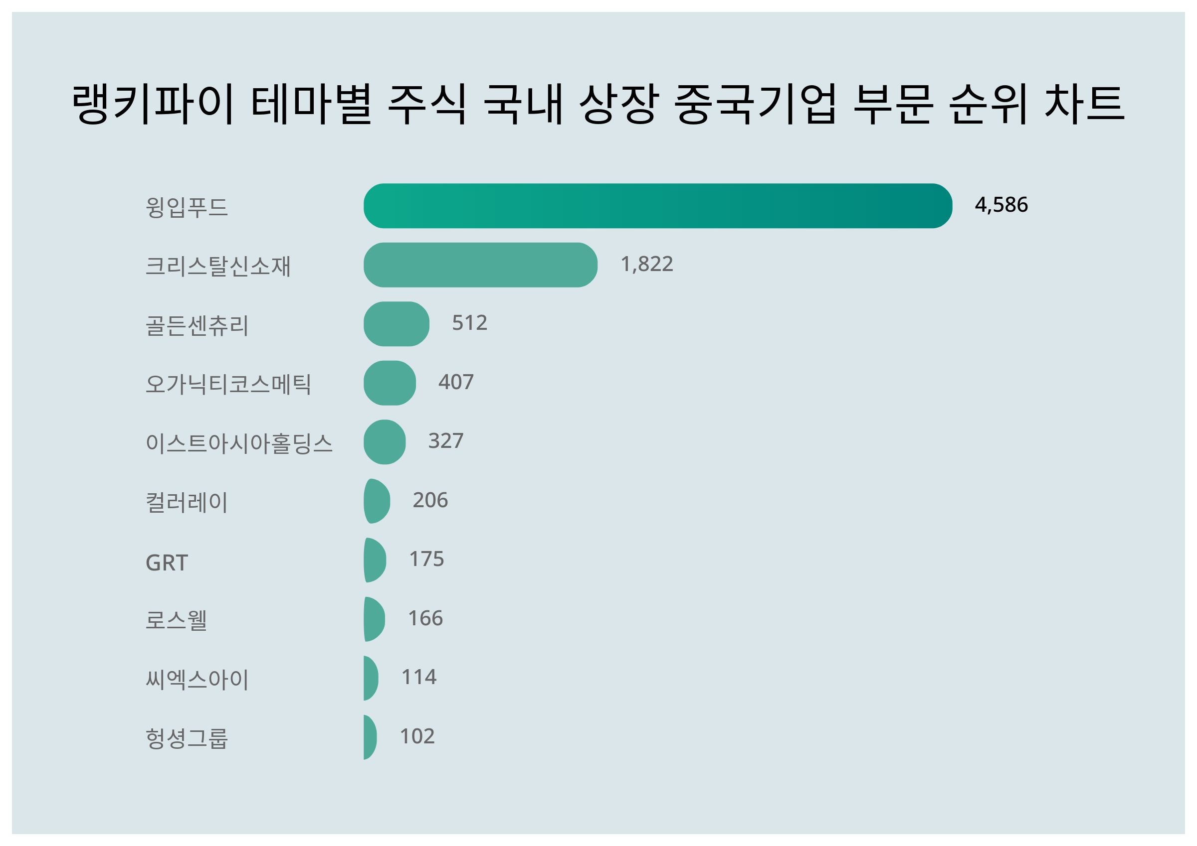 [출처: 랭키파이 테마별 주식 국내 상장 중국기업 부문 트렌드 테이블]
