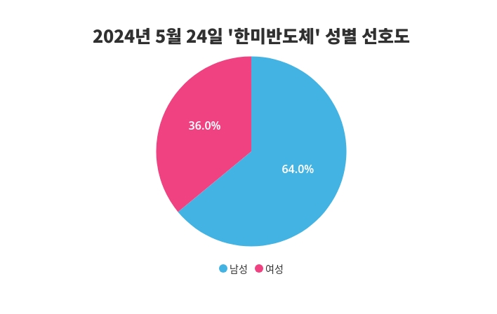 한미반도체의 성별 관심도에서 남성이 64% 비율로 한미반도체에 대한 관심도가 상대적으로 높은 것으로 나타났다.