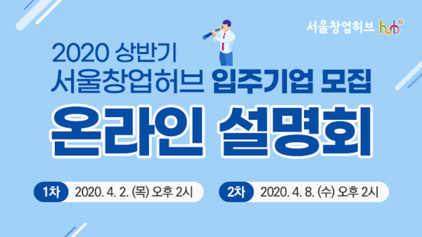 한편 서울창업허브는 코로나 19로 어려움을 겪고 있을 기업에 도움을 주고자 ‘2020 상반기 입주기업 모집’ 관련 설명회를 온라인으로 진행한다.